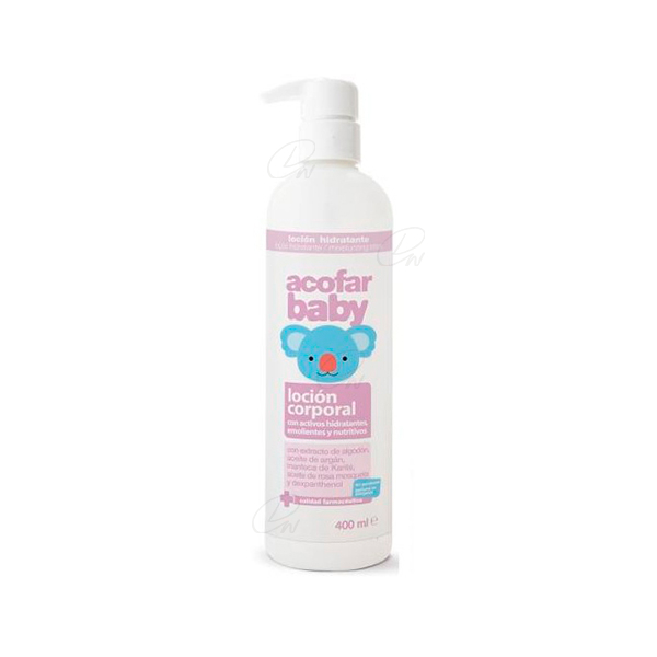 También contiene activos hidratantes como la glicerina, alantoina y dexpanthenol, beneficiosos para dejar una piel confortable, suave, lisa y utrida. El extracto de algodón, rico en proteinas, aporta un efecto acondicionador, suavizante y protector, contribuyendo a su hidratación, nutrición y mantenimiento en condiciones óptimas. La loción hidratante Acofarbaby está indicada para el cuidado de la piel del bebé o del niño, tras el baño diario, protegiendo su piel de las agresiones externasy dejándola confortable y suave.