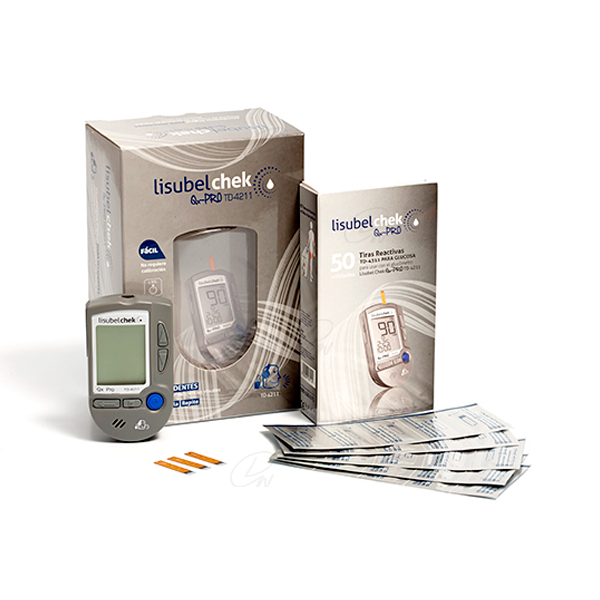 Tiras reactivas para la determinación de la glucemia para su uso con glucómetro Lisubel chek Qx-PRO TD 4211. Dan una medición cuantitativa de la glucosa en sangre. Cuando el orificio absorbente se llena con la muestra de sangre, empieza la reacción entre la glucosa en sangre y los componentes químicos de la tira se activan y generan una corriente eléctrica. El glucómetro mide esta corriente y muestra el correspondiente nivel de glucosa en sangre. La fuerza de la corriente producida por la reacción depende de la cantidad de glucosa en la muestra de sangre.